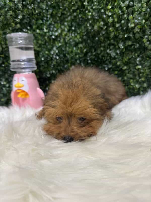 A Pomapoo is a charming, small breed mix between a Pomeranian and a Poodle. These dogs are known for their affectionate, playful, and friendly nature, making them excellent companions for families and individuals alike. They often inherit the Poodle’s intelligence and trainability, along with the Pomeranian’s lively and social personality.